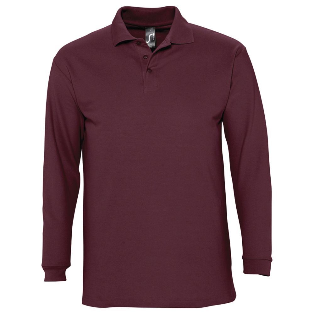 Рубашка поло мужская с длинным рукавом Winter II 210 бордовая, размер S