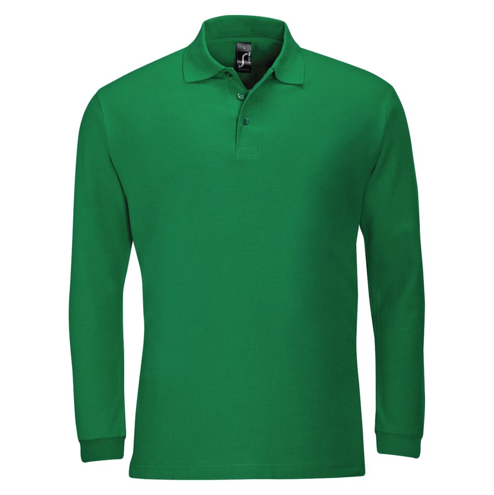 Рубашка поло мужская с длинным рукавом Winter II 210 ярко-зеленая, размер S