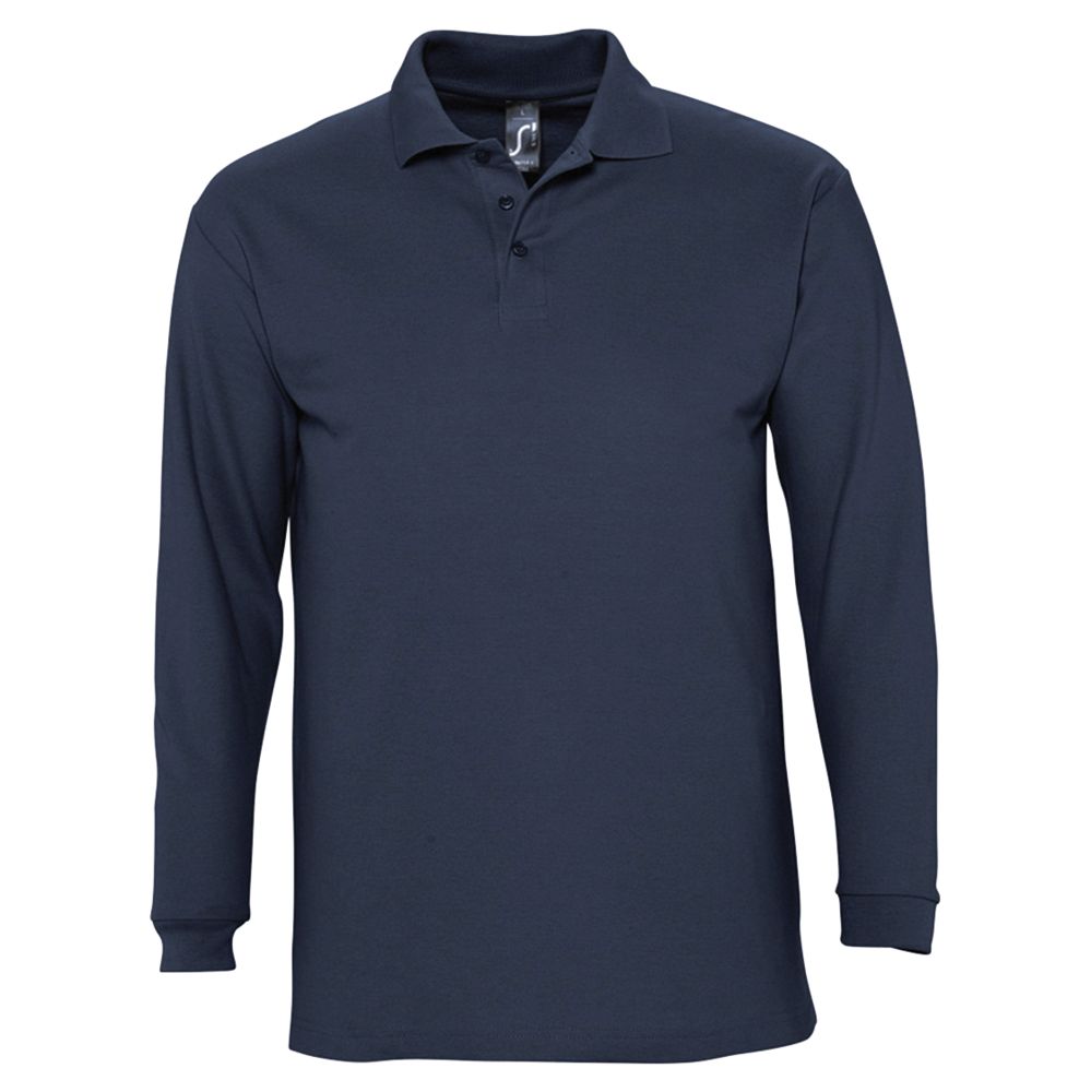 Рубашка поло мужская с длинным рукавом Winter II 210 темно-синяя, размер S