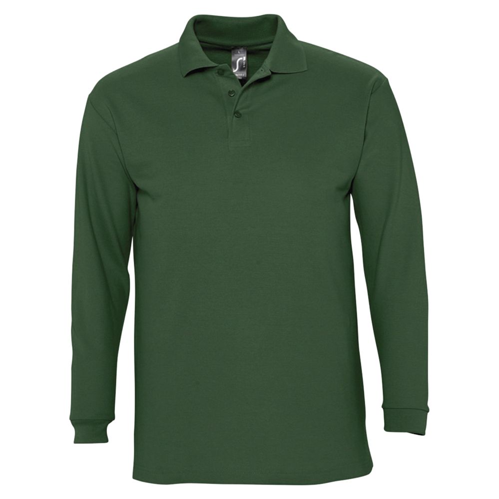 Рубашка поло мужская с длинным рукавом Winter II 210 темно-зеленая, размер S