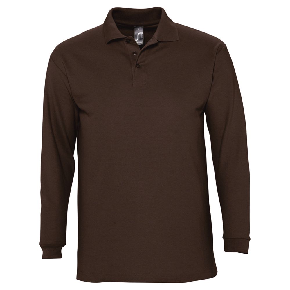 Рубашка поло мужская с длинным рукавом Winter II 210 шоколадно-коричневая, размер S