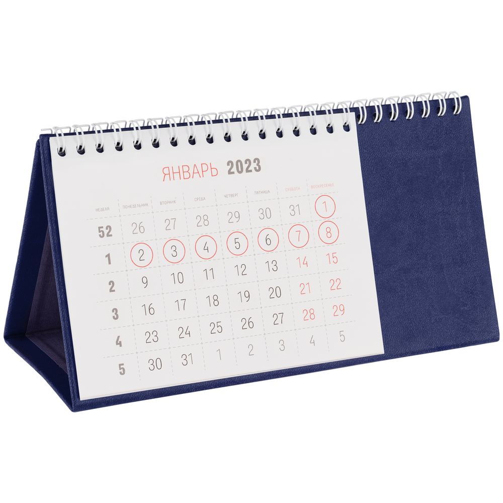 Настольный, перекидной календарь-«домик» выполнен из материала Brand, синий НН.