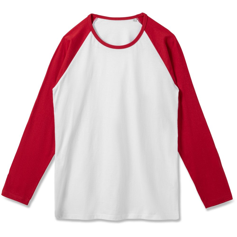 Женская двухцветная футболка с боковыми швами, длинным рукавом реглан и закругленным низом.