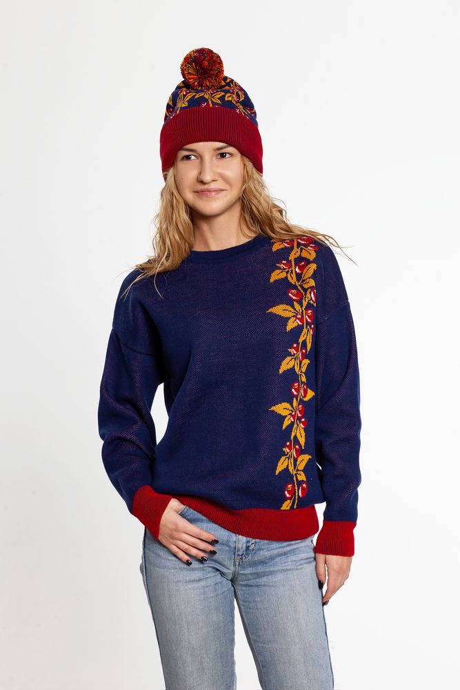 Джемпер с круглым вырезом и жаккардовым рисунком.