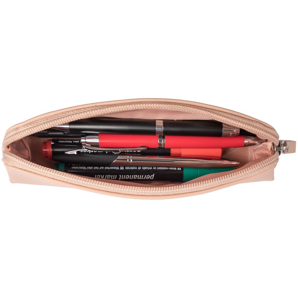 Изделие из рециклированной кожи, можно использовать как пенал для ручек или косметичку.