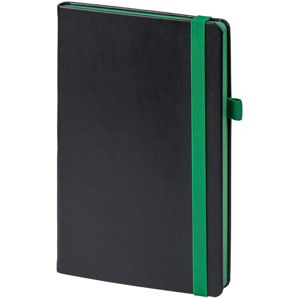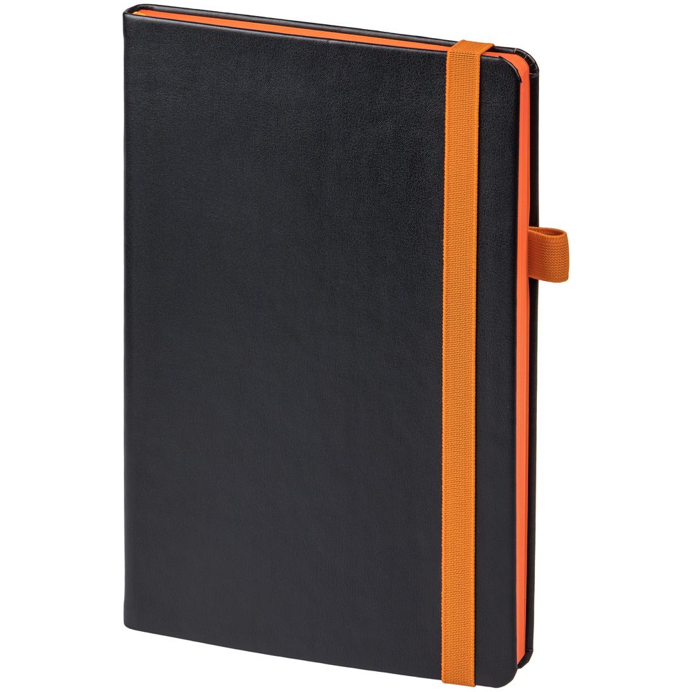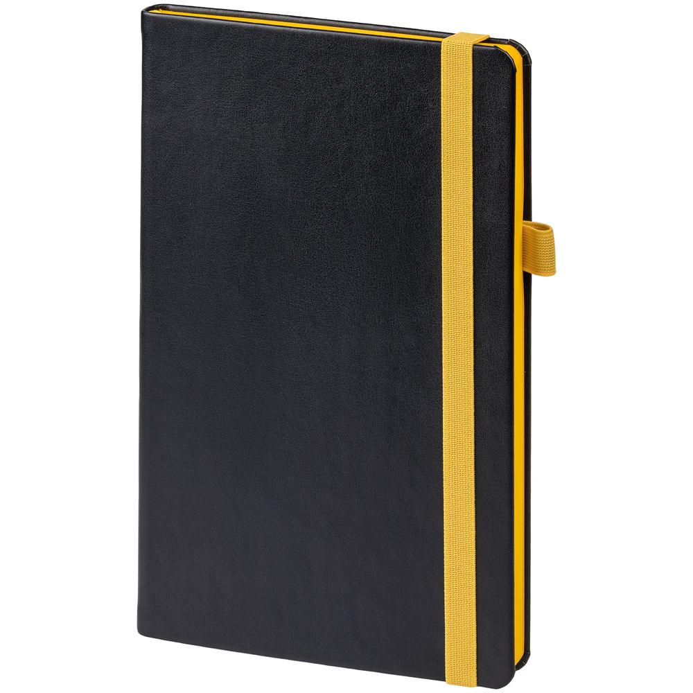 Ежедневник с полутвердой обложкой, выполнен из материала Waltz, черный АА, дополнен желтой резинкой и ляссе.