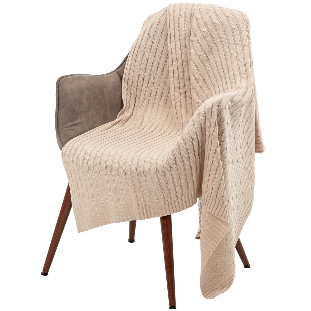 Плед фактурной вязки с косами.