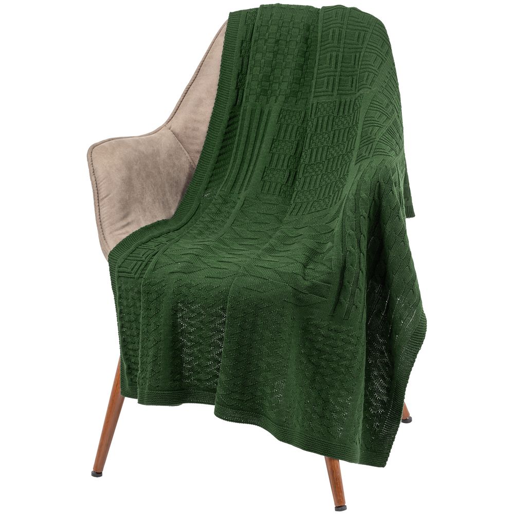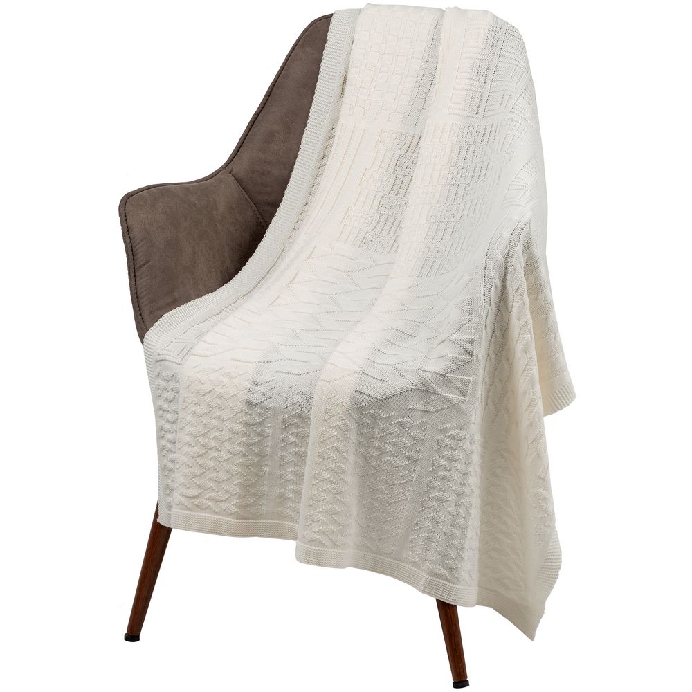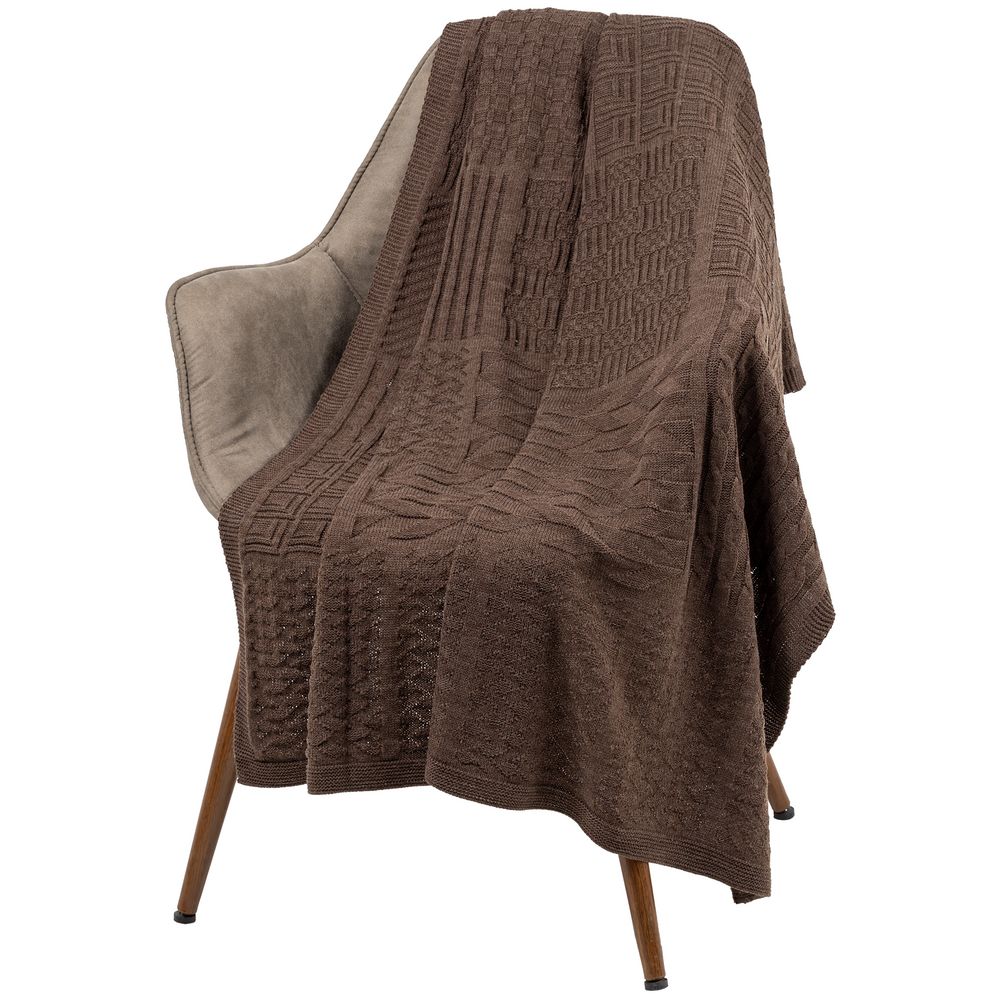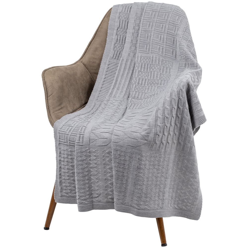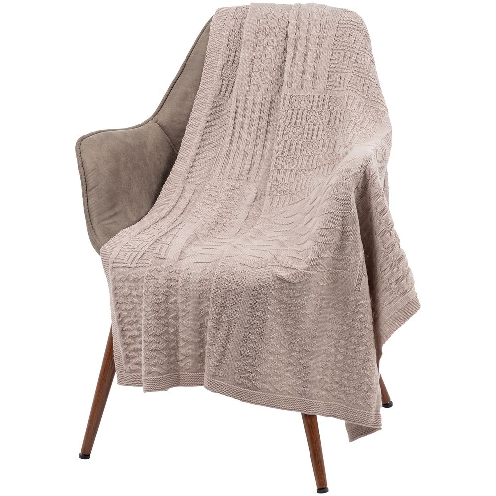 Плед фактурной вязки с орнаментом в стиле пэчворк — не совсем отдельные лоскутки, но гармоничное сочетание разных узоров.