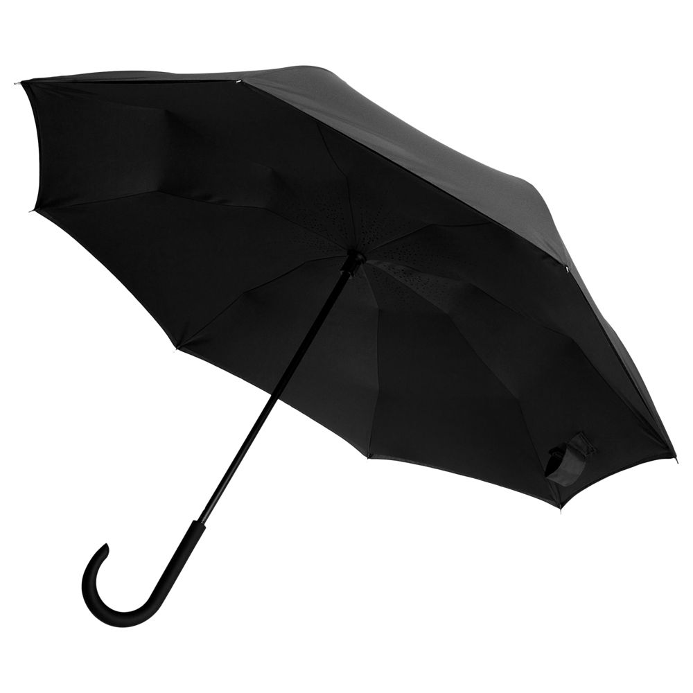 Это зонт-наоборот, зонт-наизнанку. Складываясь после дождя, он прячет мокрую поверхность в себя, а сухая остается снаружи. Для просушки его можно не только подвесить за ручку, как обычные зонты, но и поставить прямо на пол в полусложенном состоянии. Итог — мягкая щадящая просушка и минимум занятого мокрым зонтиком места.