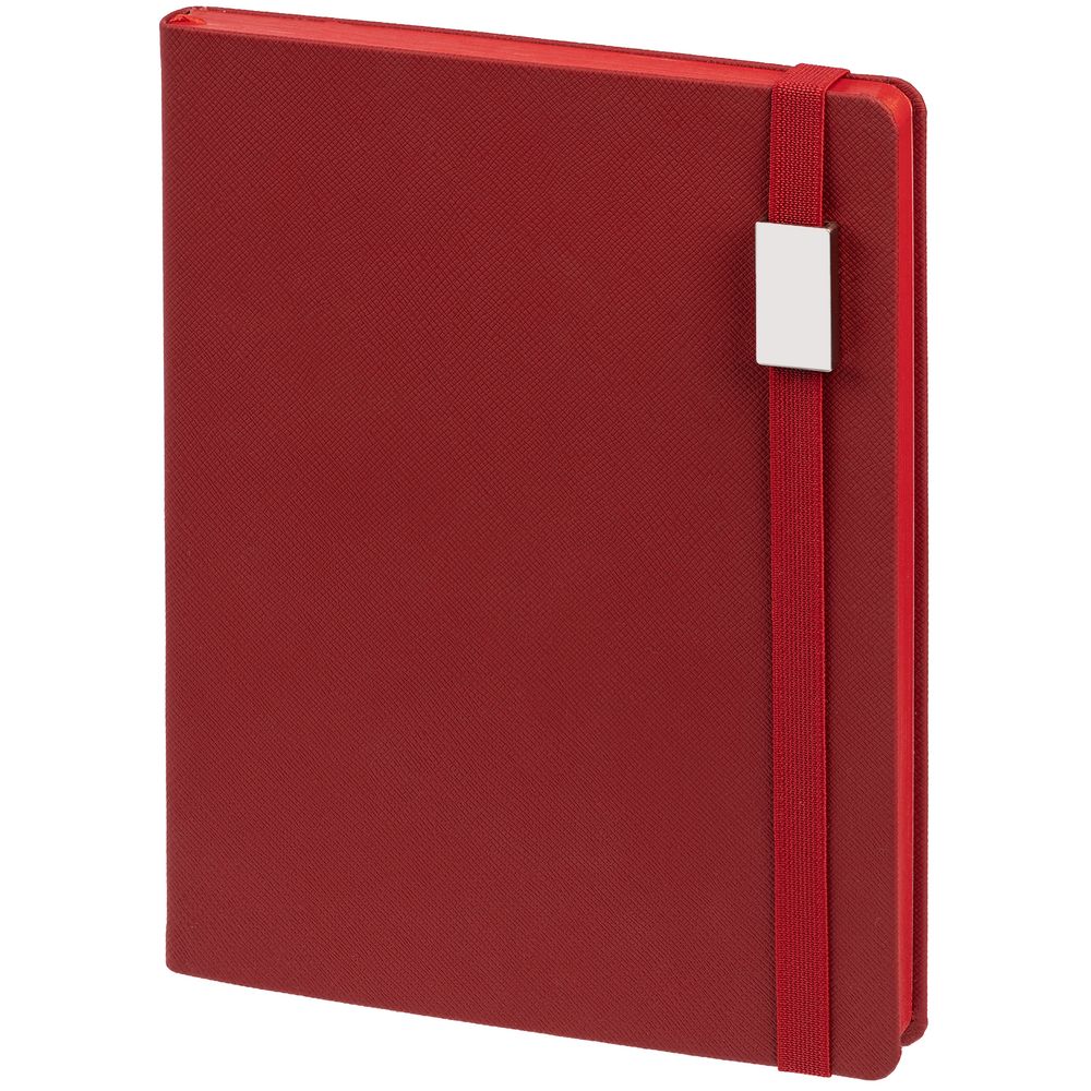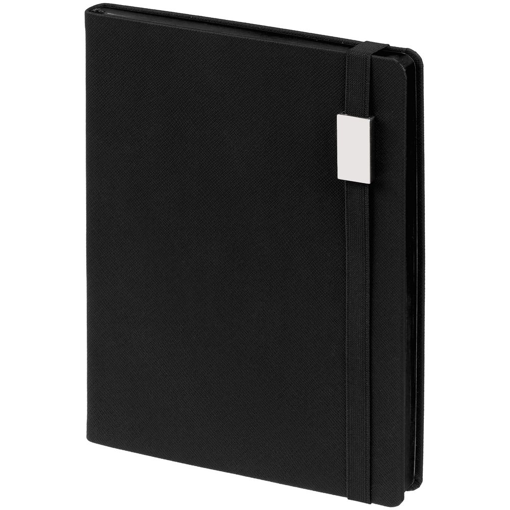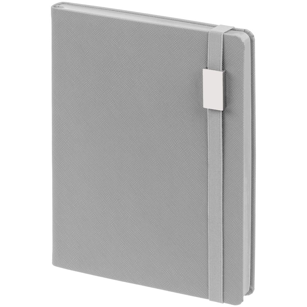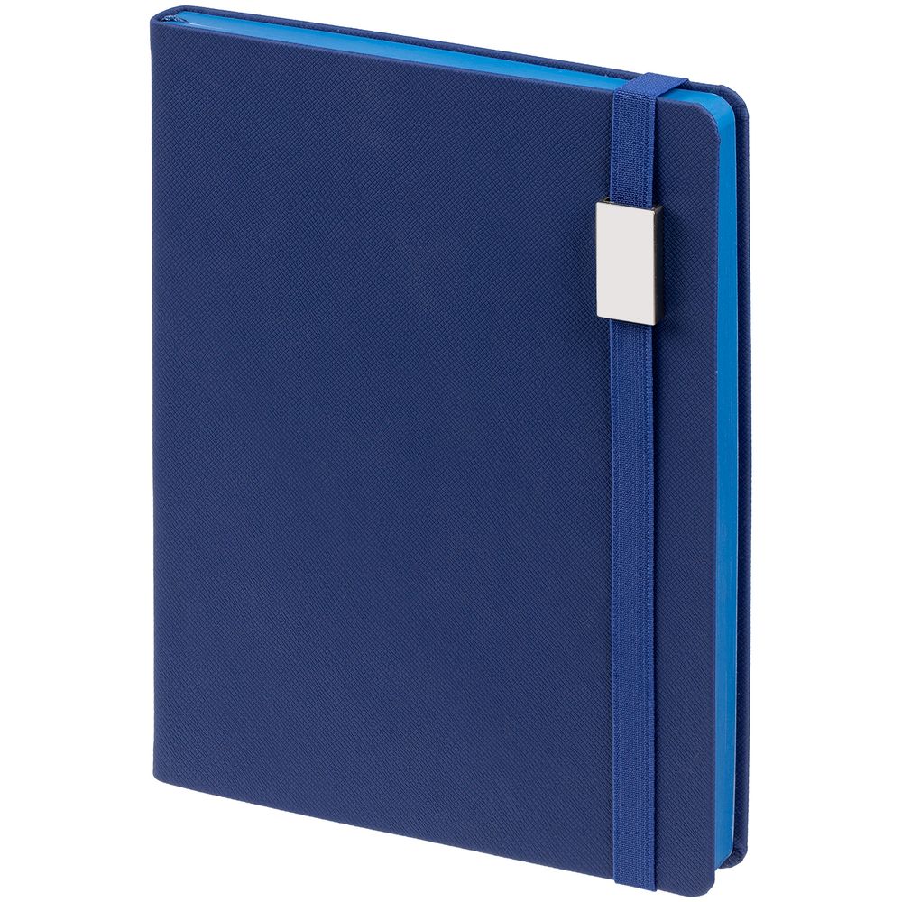 Ежедневник с полутвердой обложкой выполнен из материала Nice Touch, морская волна II, и дополнен резинкой шириной 1 см с металлическим шильдом и ляссе в цвет обложки.