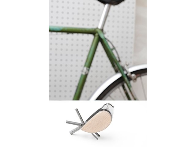 Очаровательный мультитул в виде птицы может показаться просто миленькой фигуркой, но пусть вас не смущает ее милый вид – на самом деле это многофункциональный инструмент 6-в-1! Клюв птички представляет собой крестовую отвертку из нержавеющей стали, ее ножки – это шестигранный шлиц на 3 и 2 мм, а хвостовые перья – шестигранники на 6, 5 и 4 мм, которые всегда готовы прийти вам на помощь. Бока птички – из букового дерева, их можно украсить логотипом при помощи гравировки, УФ-печати или тампопечати, чтобы украсить пернатое создание.