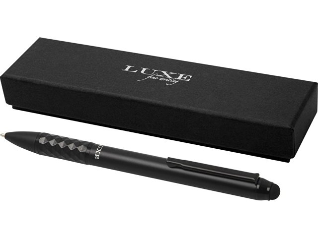 Шариковая ручка со стилусом и эксклюзивным дизайном сочетает в себе шикарный внешний вид и надежность. Корпус эргономичен для использования. Ручка заправлена черными чернилами и упакована в подарочную коробку LUXE. Ее можно дополнить перьевой ручкой или ручкой-роллером и использовать в качестве подарочного набора. Алюминий.
