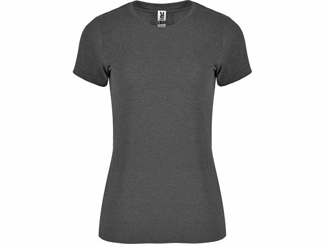 Футболка с коротким рукавом в меланжевом эффекте. Риб горловины 1х1 дополнительно укреплен двойной строчкой.