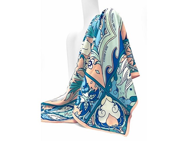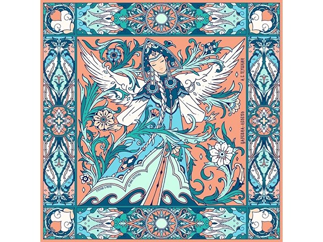 В центре авторского принта — удивительной красоты женщина с белоснежными крыльями, наделенная магическими способностями и житейской мудростью. Оригинальное сочетание тонов, цветочных орнаментов и русского колорита делают аксессуар нежным и самобытным.