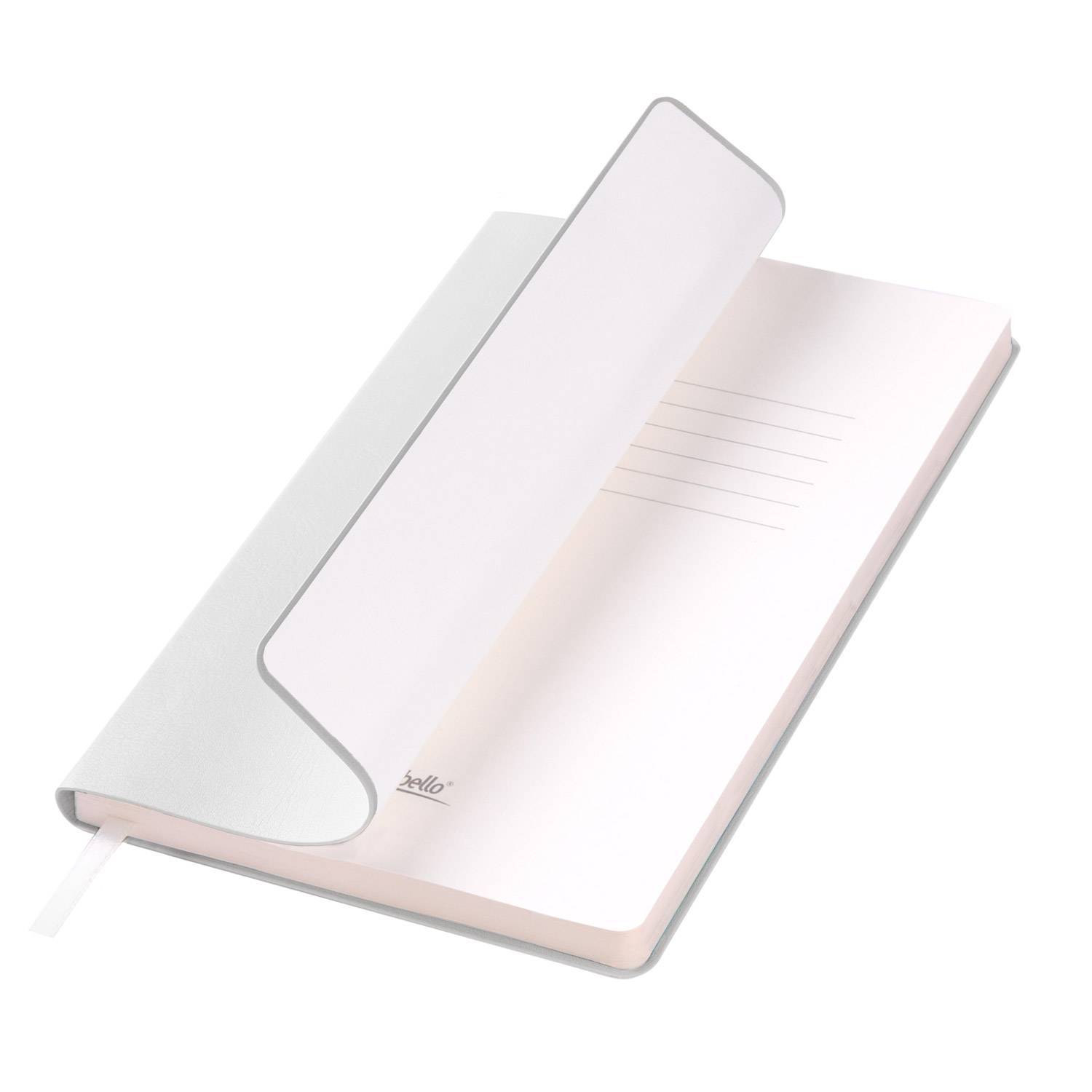 Внутри — страницы теплого светло-кремового оттенка из гладкого шелковистого офсета со скругленными уголками, которые обеспечивают комфортное письмо. Элегантное атласное ляссе с легким глянцем служит изысканным акцентом.
