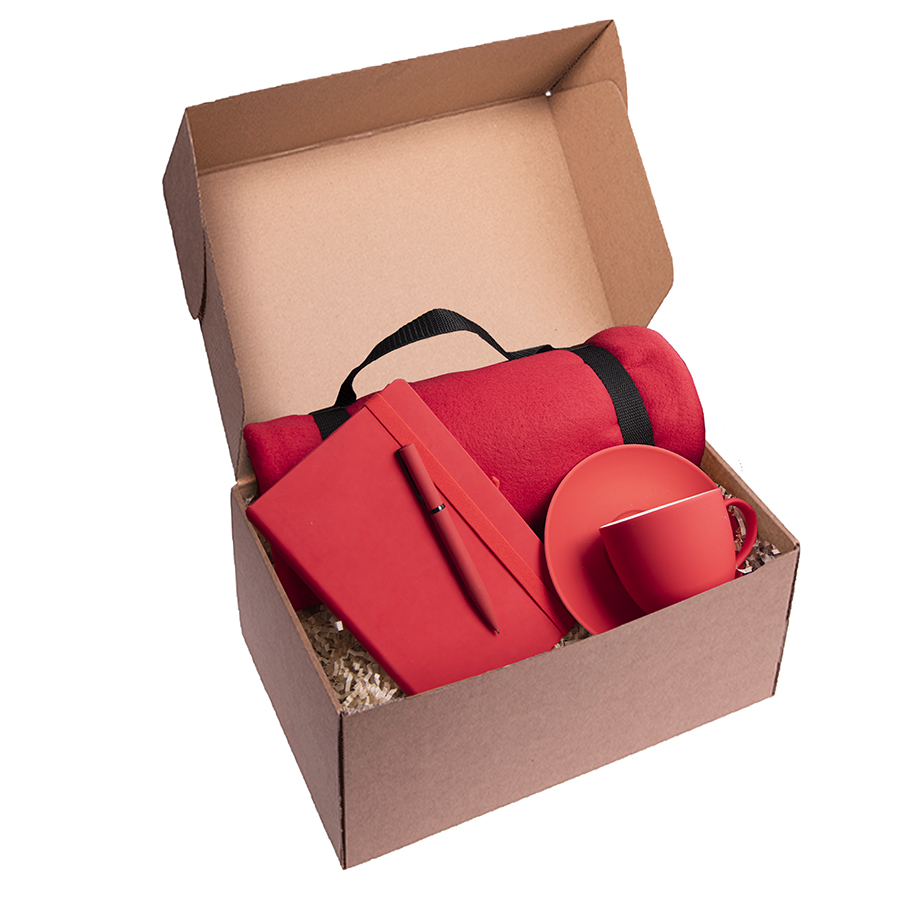 Набор подарочный COSINESS: плед, ежедневник, ручка, чайная пара, коробка, красный