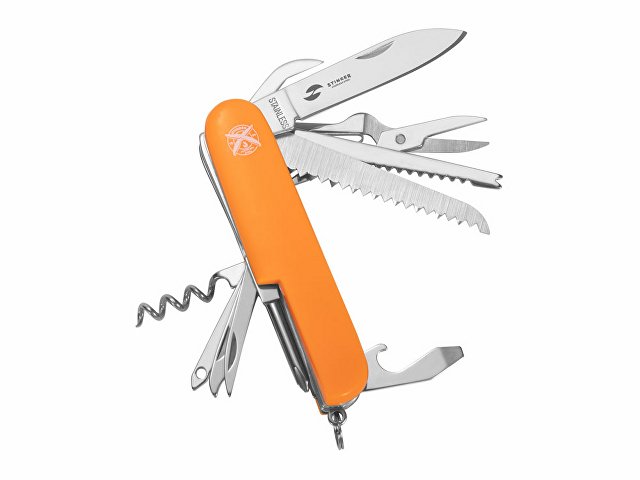 Нож перочинный Stinger, 89 мм, 15 функций, материал рукояти: АБС-пластик (оранжевый)