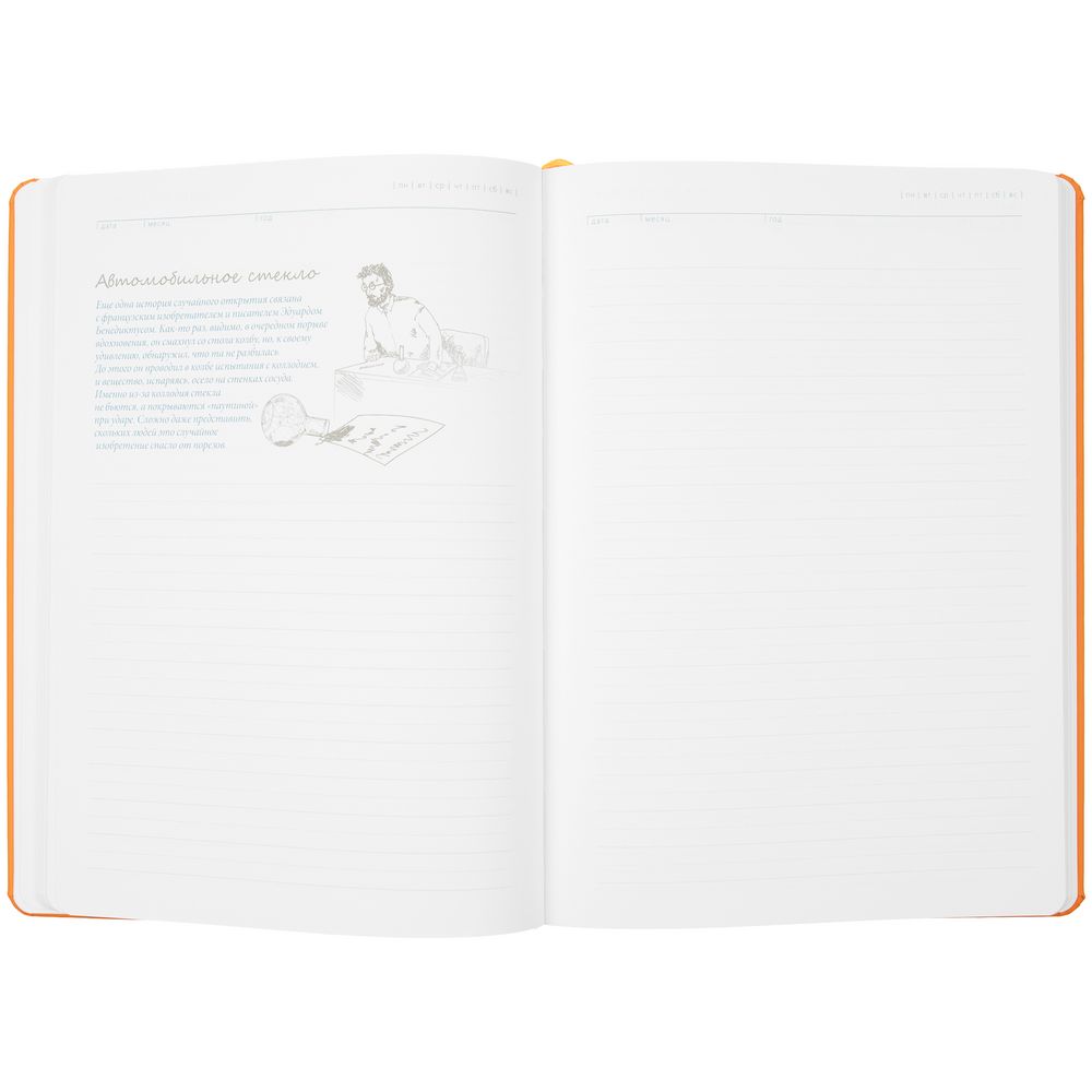 Какое отношение имеет кошка к открытию йода? Как рассылка образцов обернулась появлением пакетированного чая? Как выглядела первая тележка для покупок? За каждым из этих вопросов — история, а все истории собраны под обложкой ежедневника «История изобретений». Здесь соседствуют важные открытия и приятные мелочи жизни. Здесь описаны случайности, породившие гениальные идеи, и люди, благодаря которым в нашей жизни появились соломинки для коктейля, застежка-липучка, пылесос и пинг-понг.