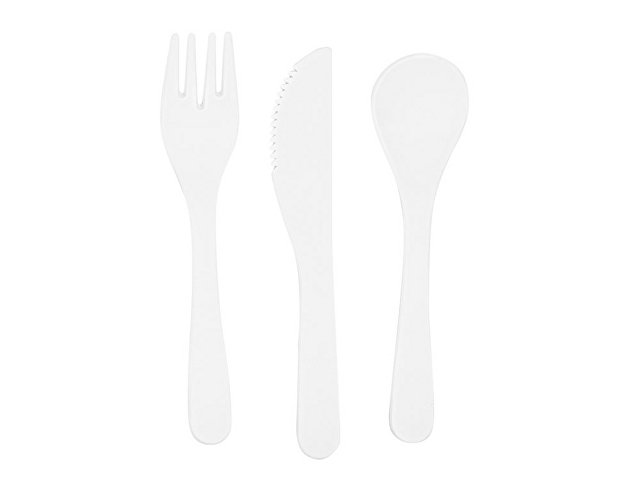 Ланч-бокс из PLA с силиконовым ремешком для регулировки. В комплекте вилка, ложка и нож. Емкость 1 л Наслаждайтесь едой в любом месте.
