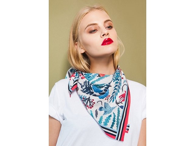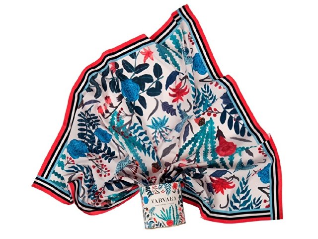Платок из искусственного шелка саржевого плетения (твил) размером 70*70 см., с авторским принтом «Голубые розы».