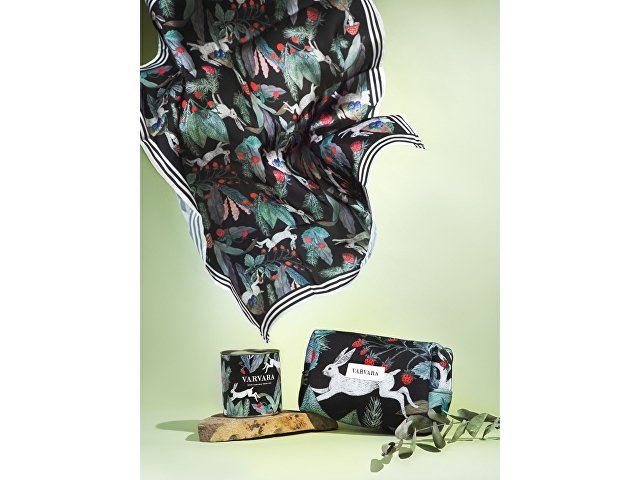 Авторский принт написан художницей вручную специально для российского бренда Varvara. Художница размышляла на тему русской природы, культуры и искусства - тут и лесная земляника, и сочная зелень, и конечно, сказочные зайцы - как будто только что сошли с полотен В. Васнецова.