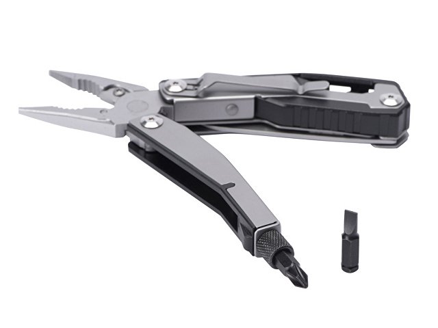 Складной нож Scopus от roq выполнен в ассиметричном необычном дизайне, в его составе — среднего размера нож, пассатижи, плоская и крестовая отвертки (биты), шестигранный ключ 5 мм.