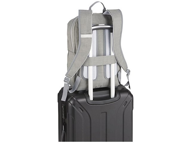 Рюкзак Zip для ноутбука 15". Гладкая ткань с серо/серебряными акцентами. Подкладка с лого Zoom® и отверстие для шнура. Основное отделение с карманом для ноутбука до 15,6". Карман из сетки и два дополнительных кармана для повербанка или телефона. Уплотненная спинка и шлейки, стропа для крепления к чемодану. Брендинг Zoom® и акценты. Полиэстер 210D.