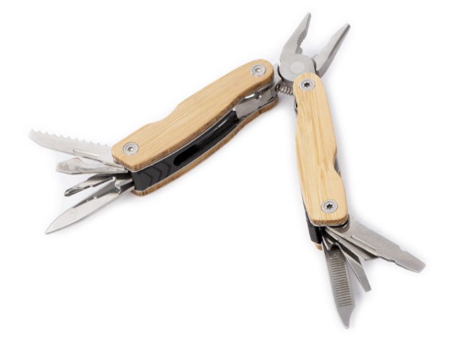 Компактный мультитул на каждый день с корпусом из бамбука. Поставляется в коробочке с чехлом.