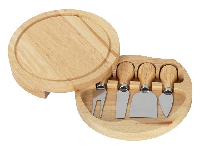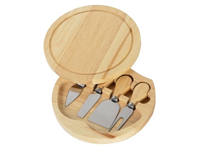 Подарочный набор для сыра в деревянной упаковке включает в себя три вида ножей и одну вилку. С помощью приборов можно нарезать сыры разных сортов. Набор упакован в деревянную подарочную коробку, которую можно использовать для хранения этих инструментов. Удобный поворотный механизм позволяет использовать крышку в качестве разделочной доски. Специальные выемки в коробке фиксируют приборы в безопасном положении.