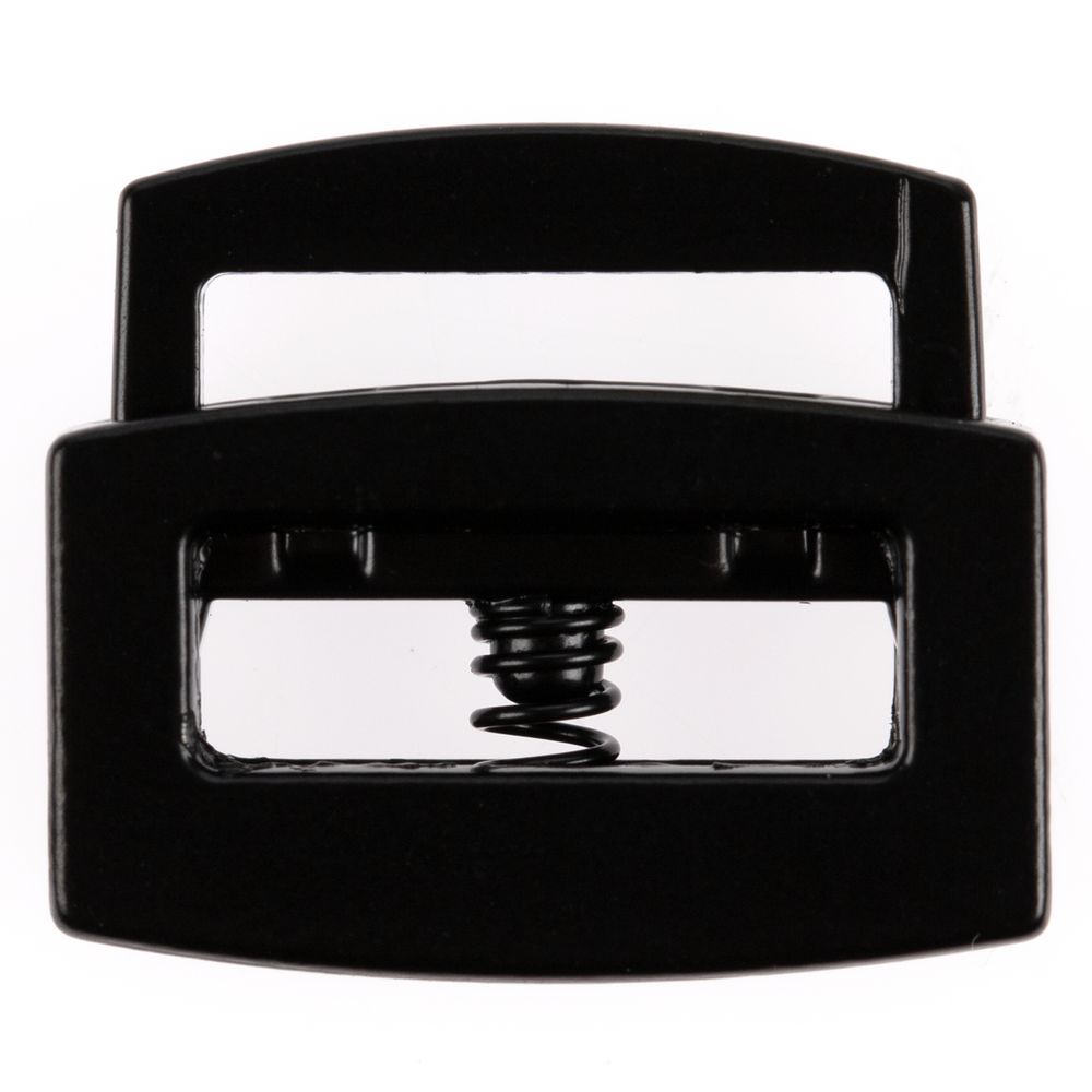 Для установки необходимо нажать на кнопу фиксатора и пропустить шнур через отверстие. Подходит для плоских шнуров, лент и резинок шириной до 1,5 см или для 2 круглых шнуров диаметром до 0,5 см.