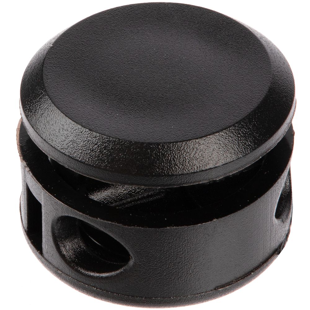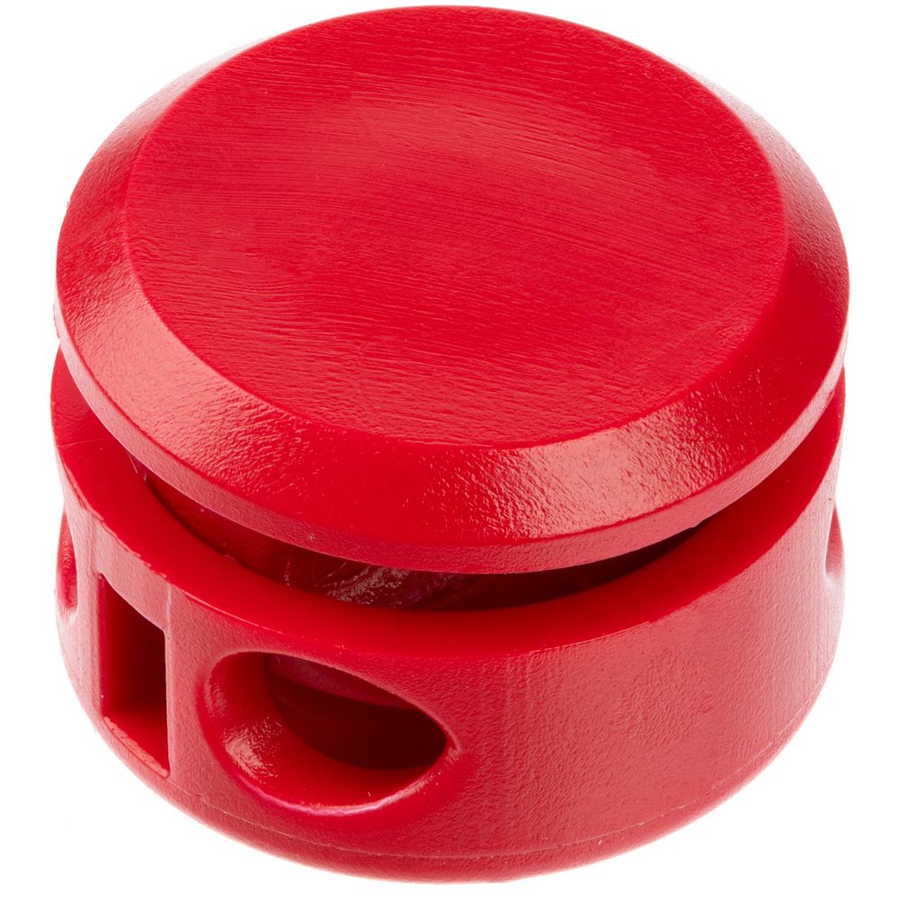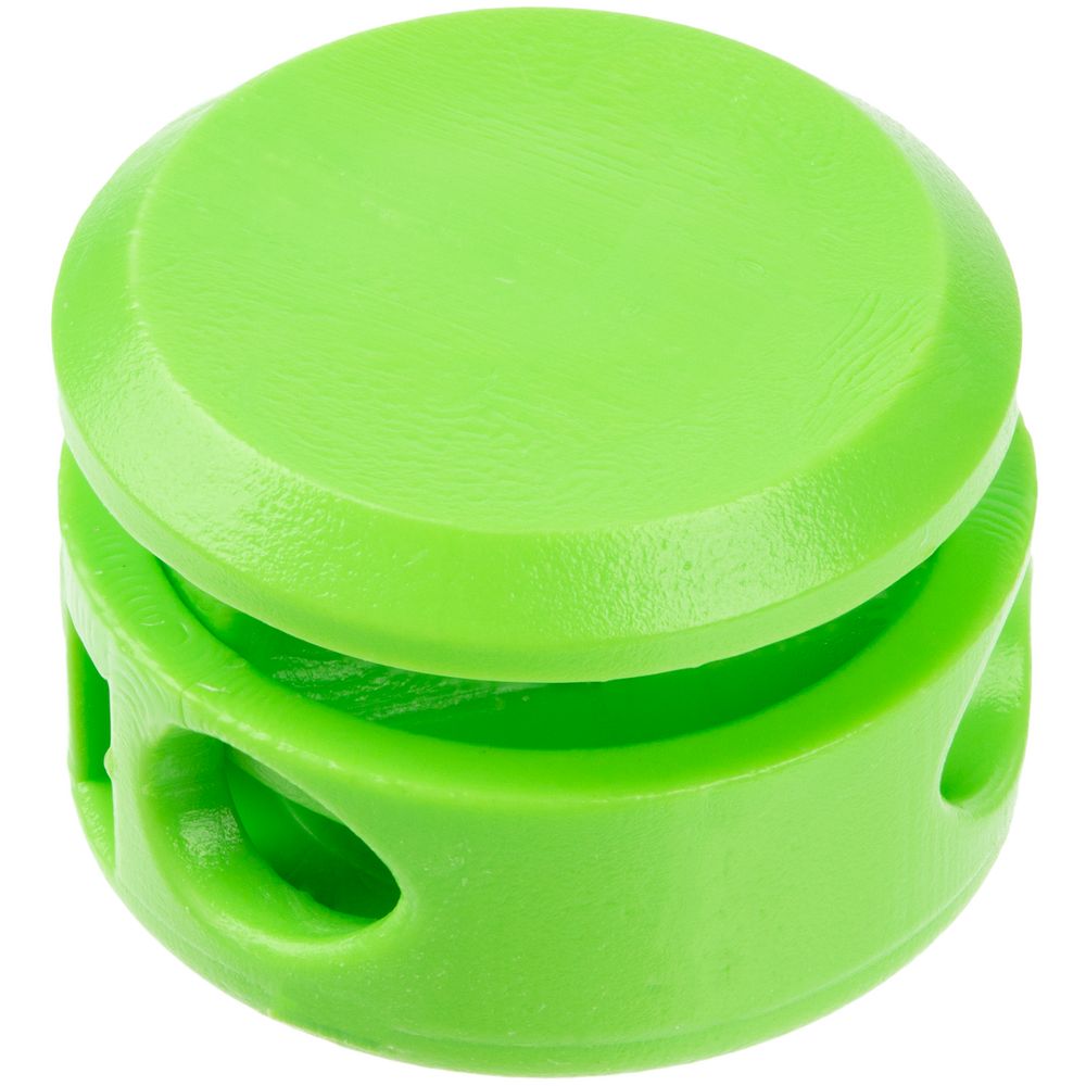 Для установки необходимо нажать на кнопу фиксатора и пропустить шнур через отверстие. Подходит для круглых шнуров и резинок диаметром до 0,5 см.