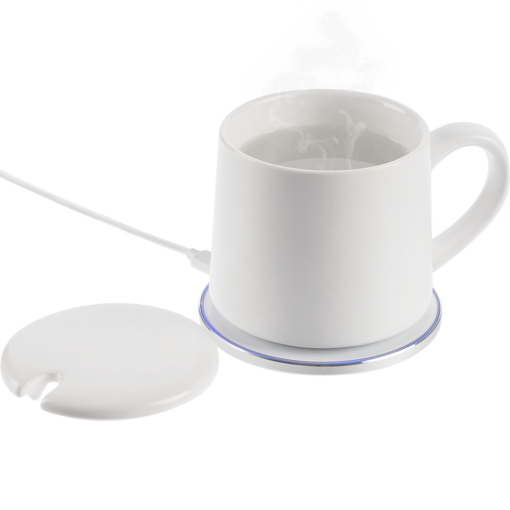 В комплект входит адаптер питания, база для зарядки и керамическая чашка, дно которой выполнено из специальных теплопроводящих материалов.
