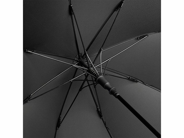 Удобный автоматически открывающийся зонт-трость с уникальной функцией быстрого открытия - нужно потянуть вниз металлическое кольцо на ручке. Купол зонта изготовлен из эпонжа из переработанного пластика, с использованием технологии WaterSAVE, когда окрашивание материала происходит в процессе производства, за счет чего снижает потребление электроэнергии и воды. Высококачественная система защиты от ветра в штормовых условиях обеспечивается гибкими спицами из стекловолокна. Ручка глянцево-черного цвета с хромированными вставками и петлей для переноски. В комплекте чехол, застегивающийся на кнопку.