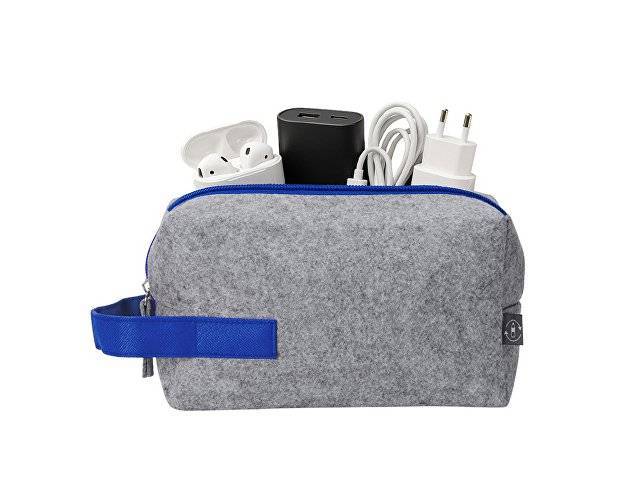 Органайзер для электроники и проводов "Felt" из RPET-фетра с ручкой, серый с синим
