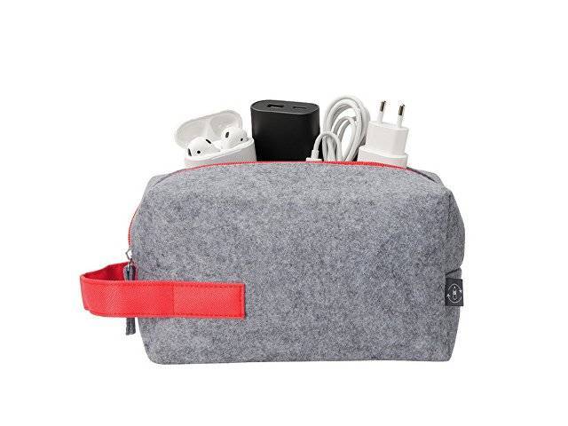 Органайзер для электроники и проводов "Felt" из RPET-фетра с ручкой, серый с красным