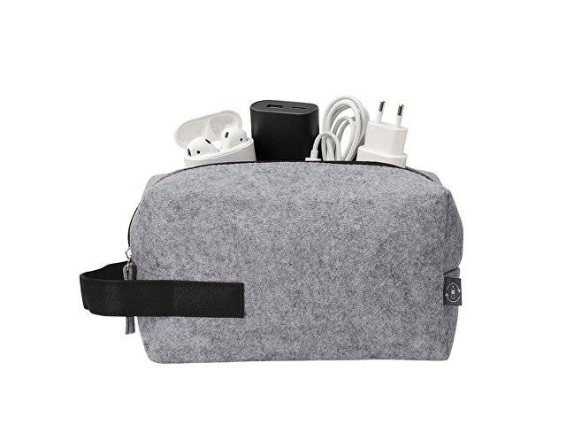 Органайзер для электроники и проводов "Felt" из RPET-фетра с ручкой, серый с черным