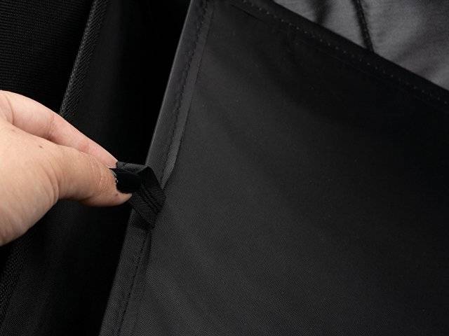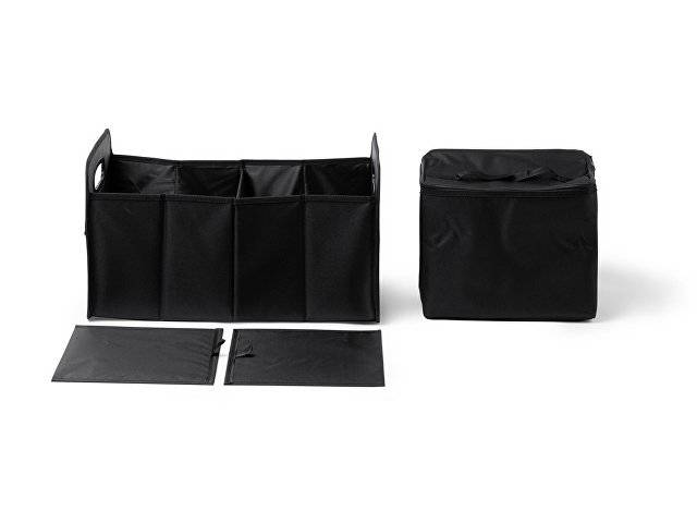 Складной органайзер для автомобиля из полиэстера 600D с усиленными ручками. Два основных отсека и внешний карман. Включает в себя съемный охладитель объемом 12 л с изотермической подкладкой.
