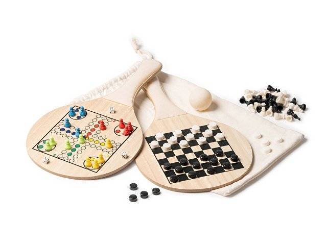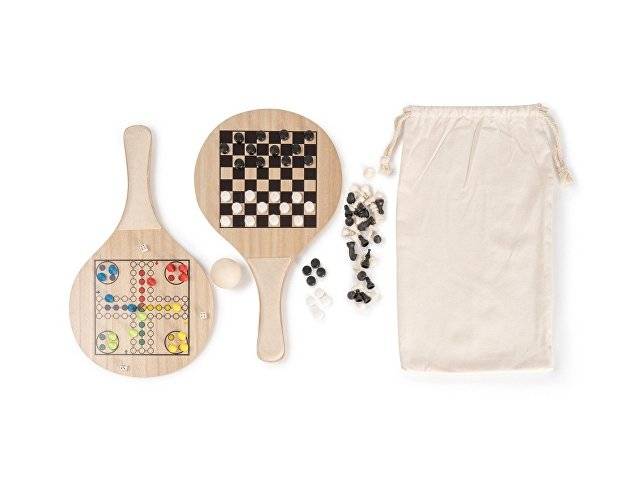 Набор пляжных лопат из дерева и пшеничного волокна. Включает игры: шахматы и парчези.