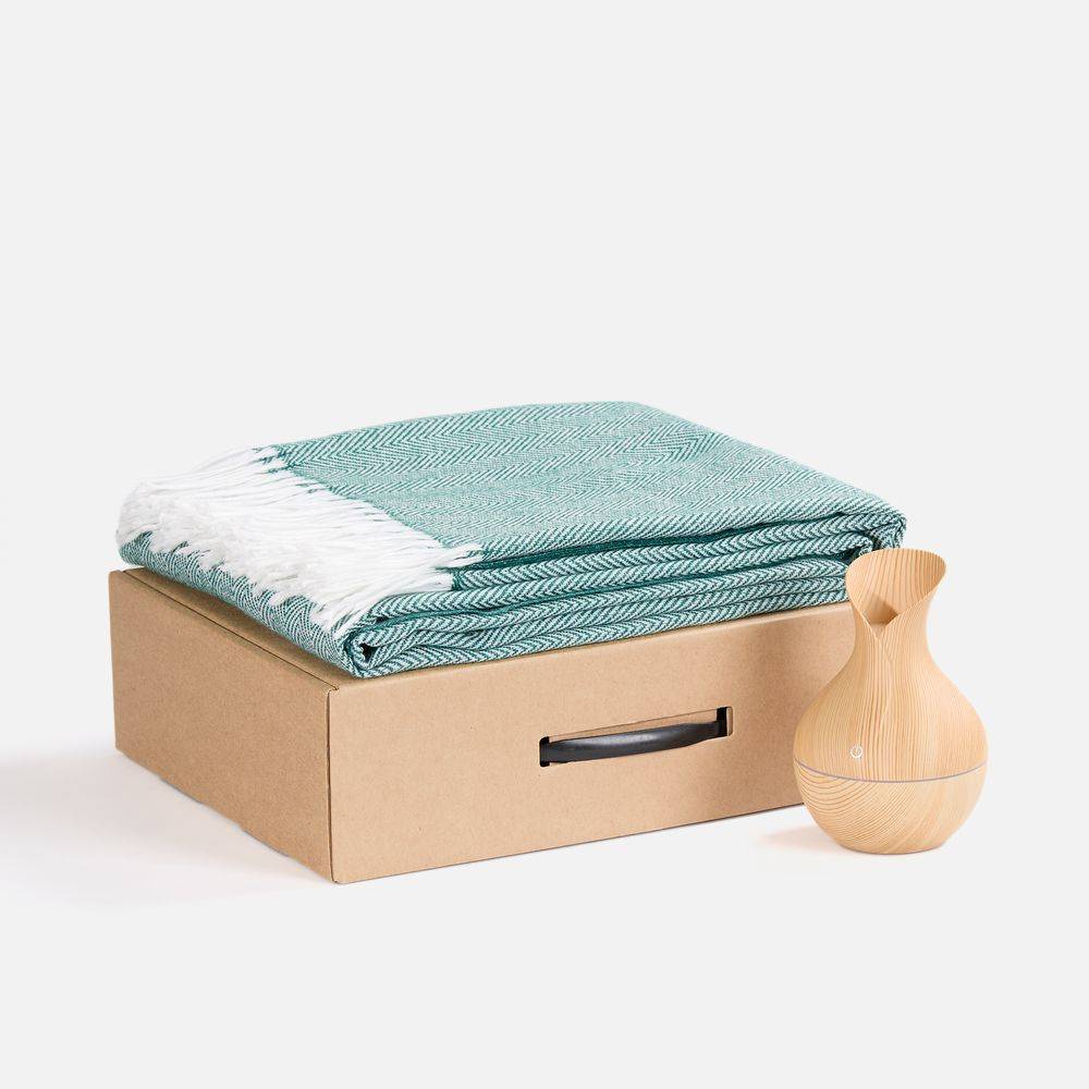 Мягкий плед нежных оттенков подарит тепло и комфорт, а изящный увлажнитель наполнит воздух свежестью и приятным ароматом. Этот набор — гармония красоты и функциональности, которая превращает каждый момент в отдых и восстановление.