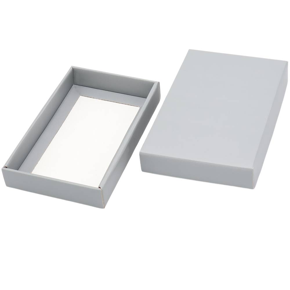 Стильная и функциональная коробка Protect типа "Крышка+дно" в классическом сером цвете с матовой поверхностью.