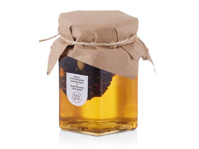 Натуральный мёд, в сочетании с хрустящими кедровыми орехами и молодыми сосновыми шишками — это не просто лакомство, а настоящий природный эликсир. Медовый десерт не только вкусный, но и полезный, идеально подойдет для чаепития, поэтому подобный подарок можно также дополнить чаем.