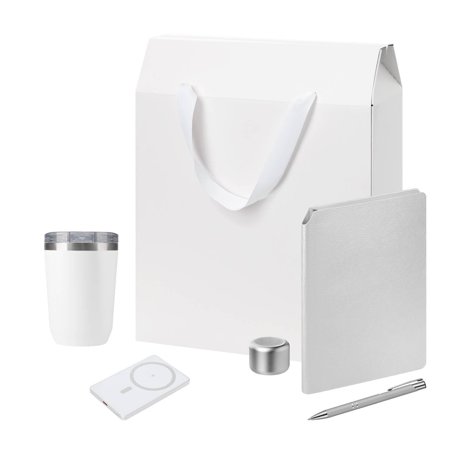 Подарочный набор Welcome Pack Premium, серебряный (термокружка, колонка, ежедневник, ручка, ЗУ, коробка-пакет)
