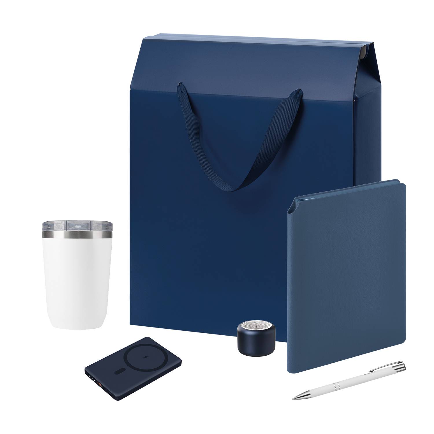 Подарочный набор Welcome Pack Premium, синий (термокружка, колонка, ежедневник, ручка, ЗУ, коробка-пакет)