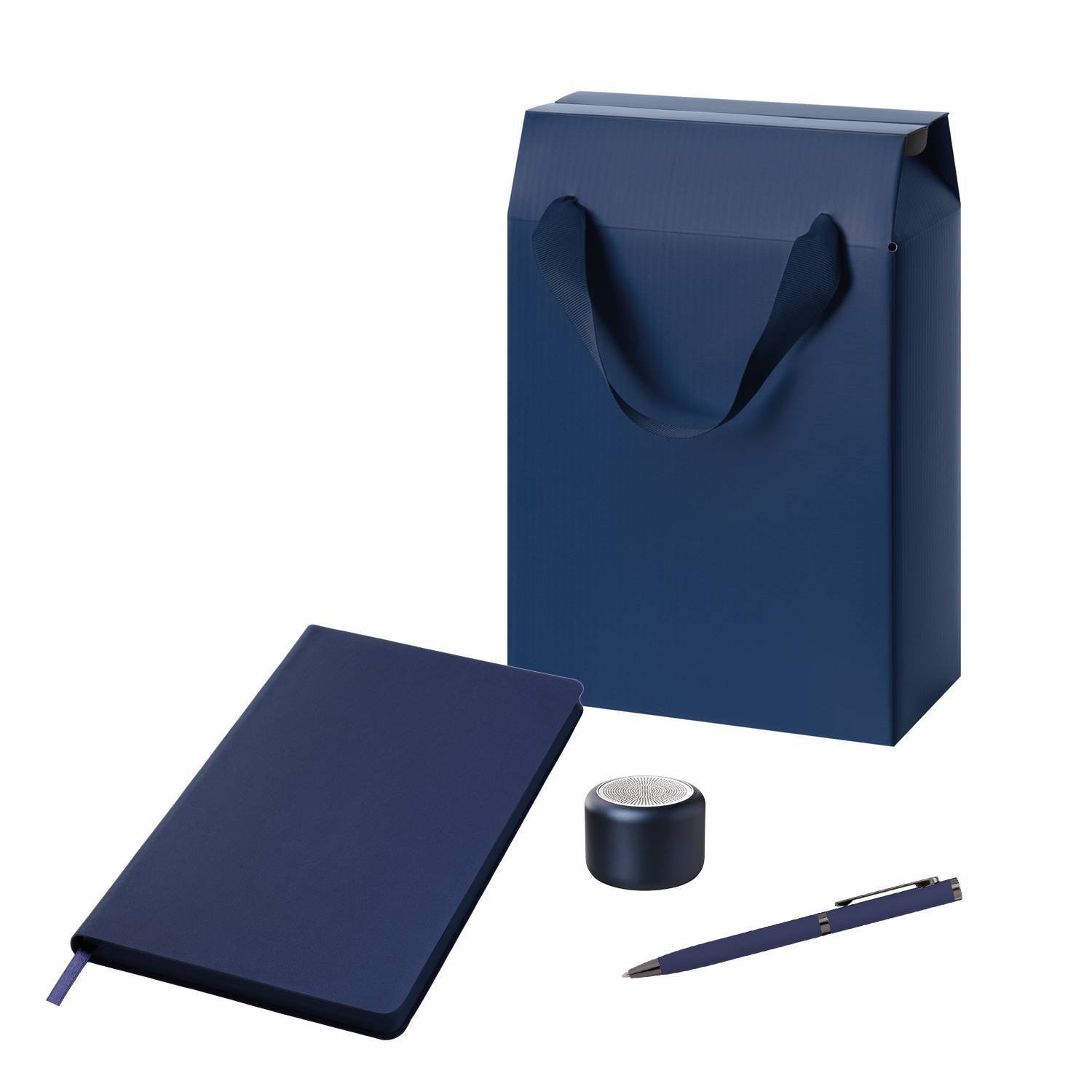 Подарочный набор Passion, синий (колонка, ежедневник, ручка, коробка-пакет)