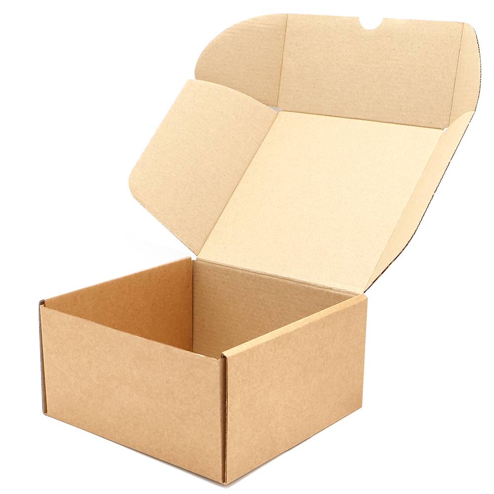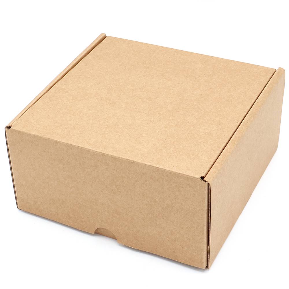 Самосборная коробка из бурого микрогофрокартона с внутренними размера 15,5х15,1х8 см.