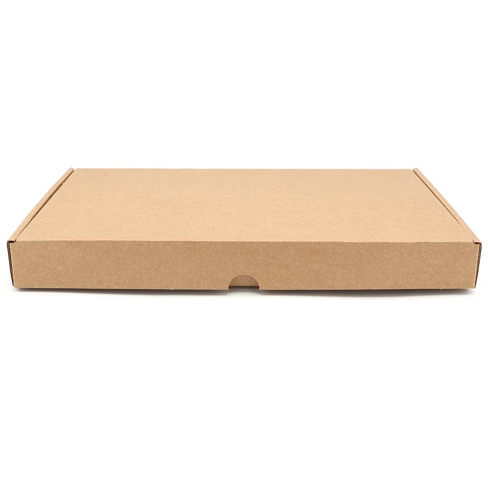 Самосборная коробка из бурого микрогофрокартона с внутренними размера 29,6*17*3 см.