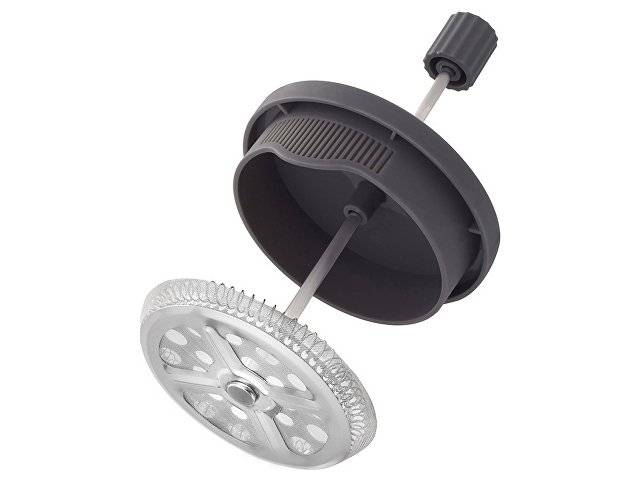 Сдержанная гармония черного и серого в пластиковом корпусе делает этот френч-пресс стильным акцентом любой кухни.