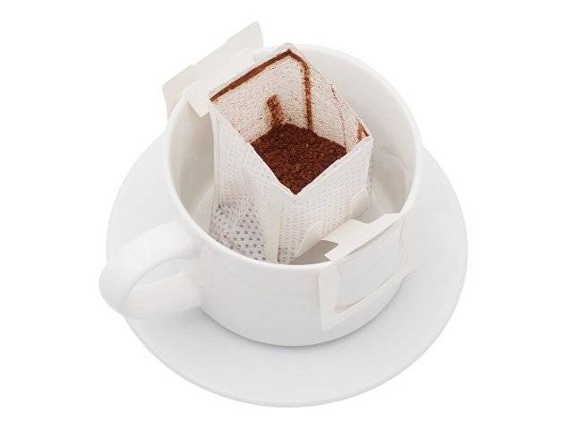 Как заварить: откройте дрип-пакет, расправьте ручки и зафиксируйте на чашке, залейте 150–200 мл воды температурой 90–95 °C в несколько проливов.