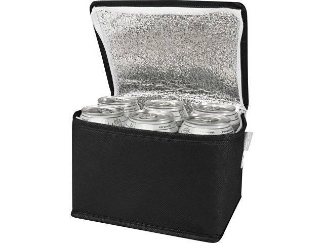 Spectrum нетканая сумка-холодильник, 4 л, на 6 банок, из переработанных материалов, сплошной черный