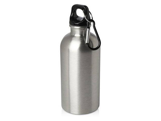 Одностенная бутылка для воды с карабином Oregon, изготовленная из нержавеющей стали, сертифицированной по стандарту RCS, объемом 400 мл - Серебряный